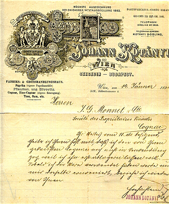 Hungary Budapest Commerce Jahann Kotanyi Liquirs Letter 1898