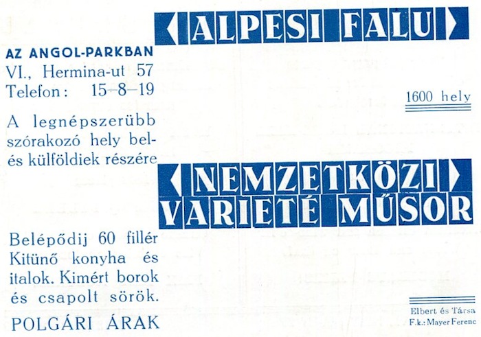 Hungary Entertainment Budapest Alpesi Falu Program 1930 Back