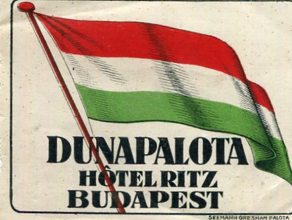 Hungary Budapest Dunapalota Hotel Luggage Label 1926