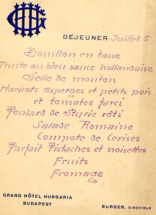 Hungary Budapest Grand Hotel Hungaria Menu 1922
