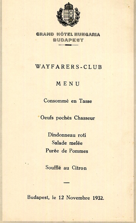 Hungary Budapest Grand Hotel Hungaria Menu 1932
