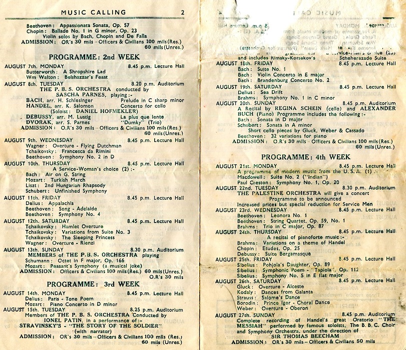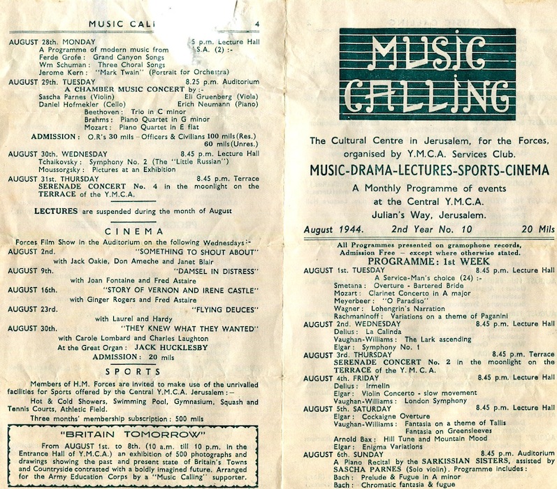 Palestine Entertainment Palestine Orchestra Jerusalem Program 1944 Inside