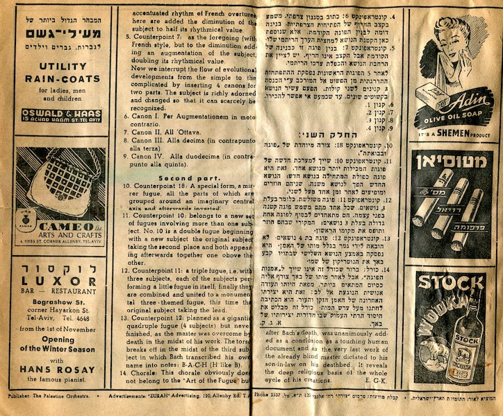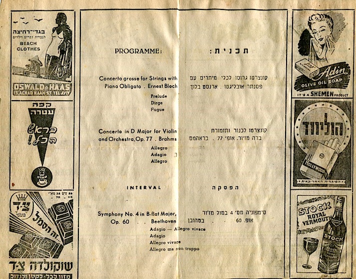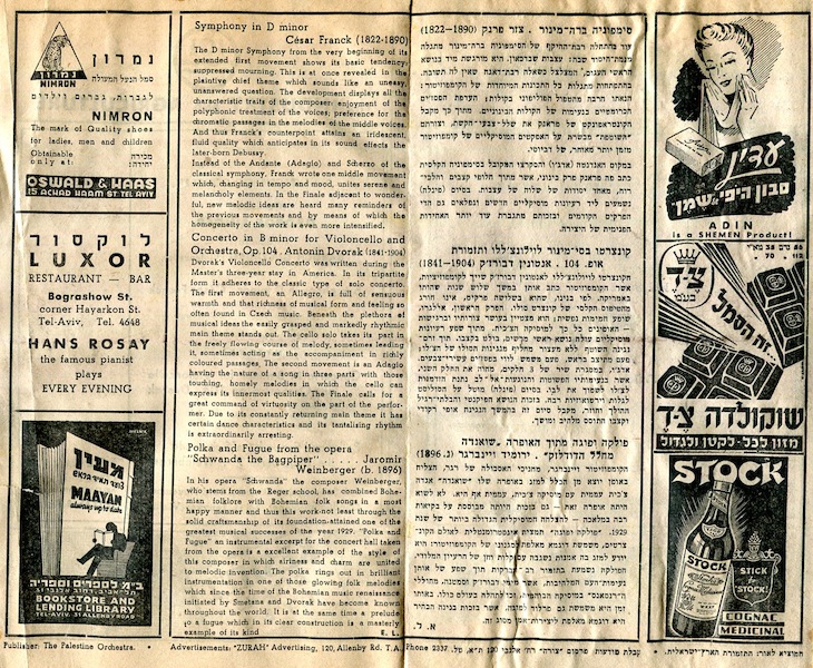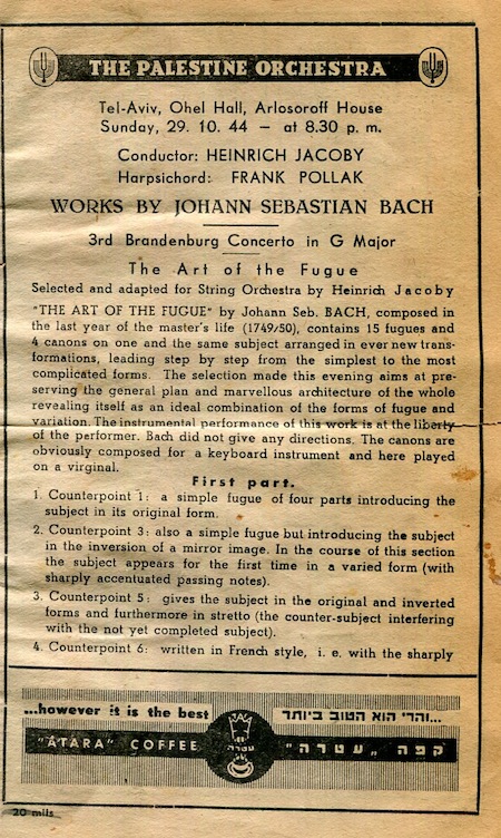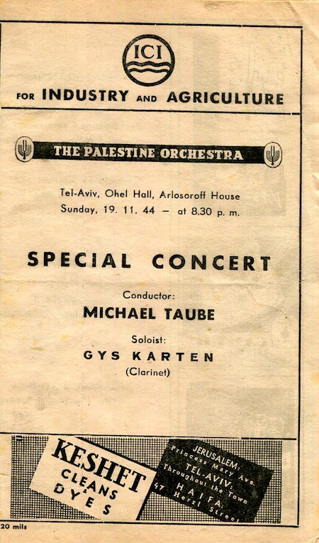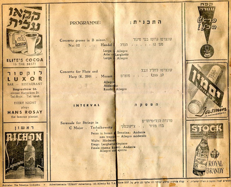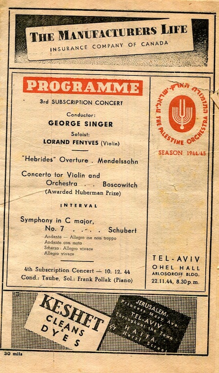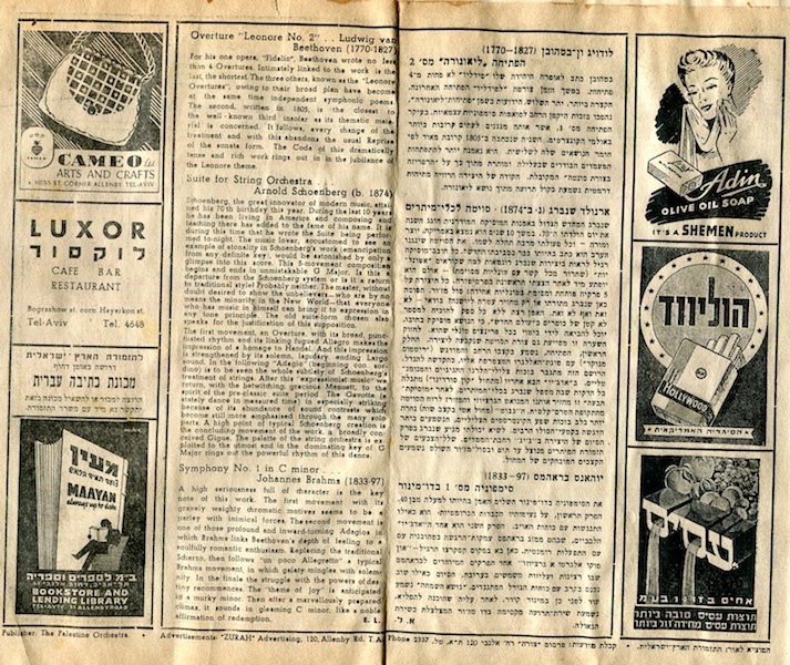 Palestine Entertainment Palestine Orchestra Tel Aviv Program 1944-4 Front