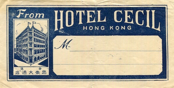 Hong Kong Hotel Cecil Luggage Label 1920