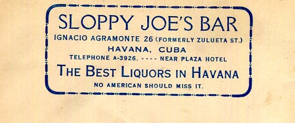 Cuba Havana Business Card Sloppy Joe's Bar 1925