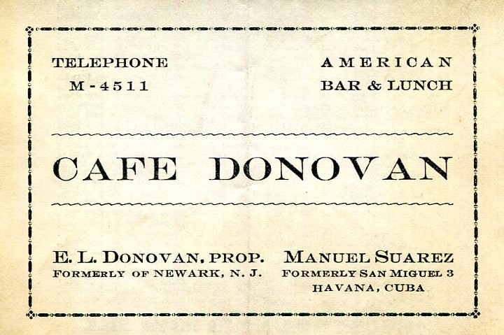 Cuba Havana Donovan's American Bar & Lunch Leaflet 1937 Front