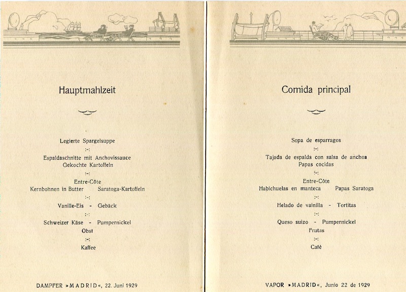 Germany Transport Steamship NGL SS Madrid Menu 1929 Inside