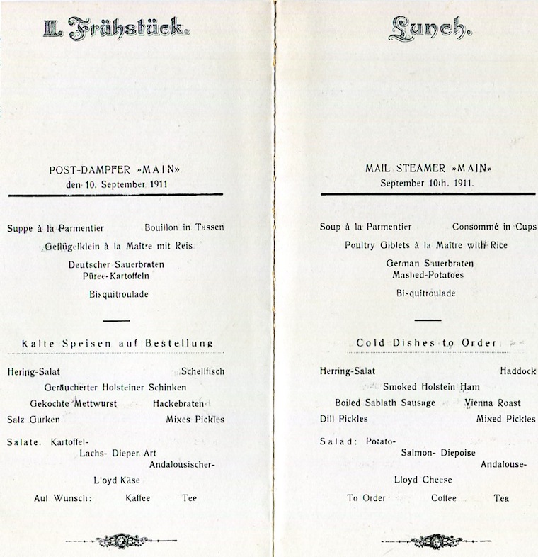 Germany Transport Steamship NGL SS Main Menu 1911 Front