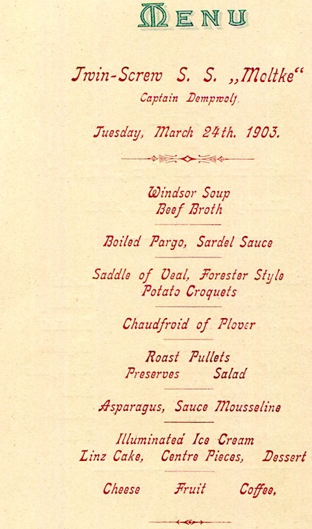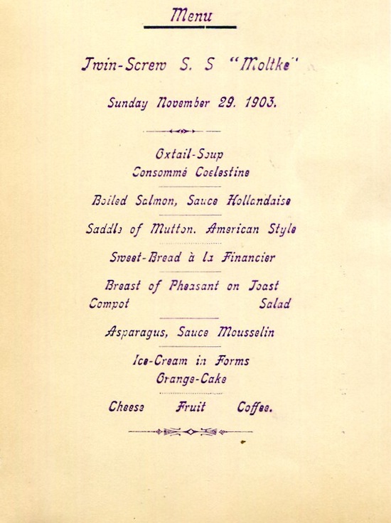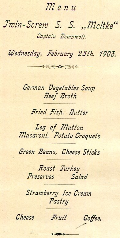 Germany Transport Steamship NGL SS Moltke Menu 1903-3 Front