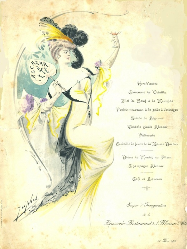 France Paris Menu Brasserie-Restaurant De l'Alcazar 1906