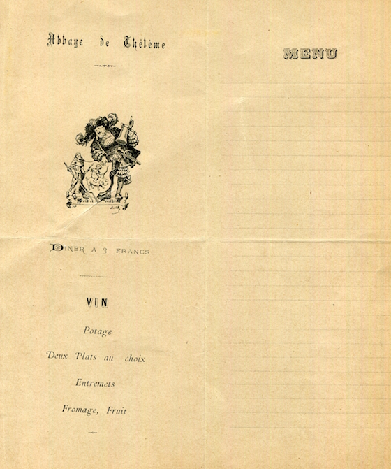 France Paris Menu Abbaye De Theleme 1890