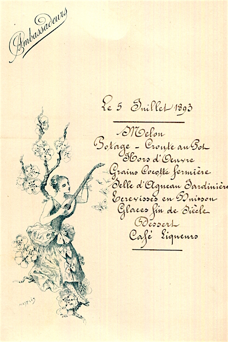 France Paris Menu Ambassadeurs 1893