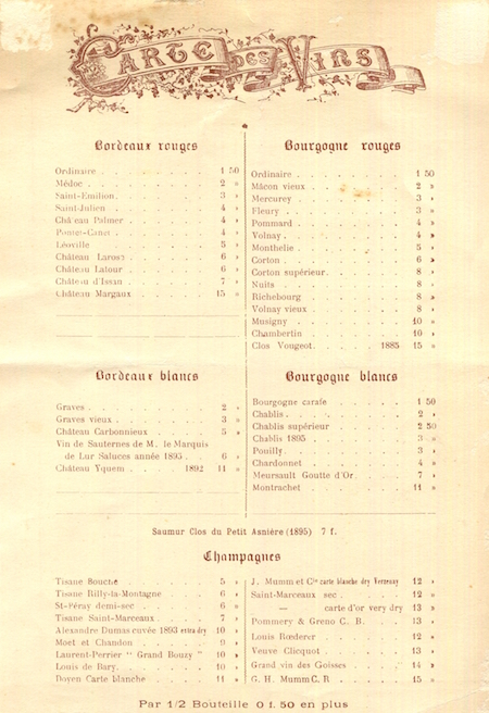 France Paris Menu 1883