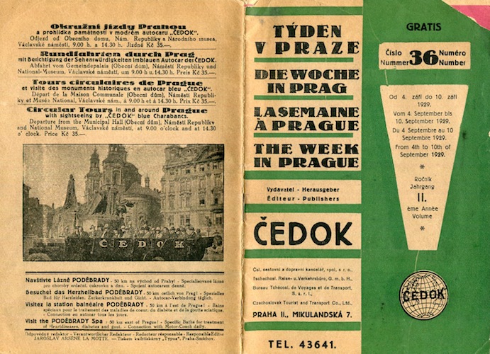 Czechoslovakia Travel Agency Čedok Tours This Week In Prague Brochure 1929-2 Front