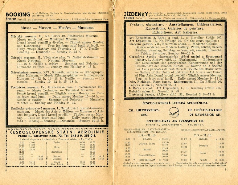 Czechoslovakia Travel Agency Čedok Tours This Week In Prague Brochure 1929-2 Inside