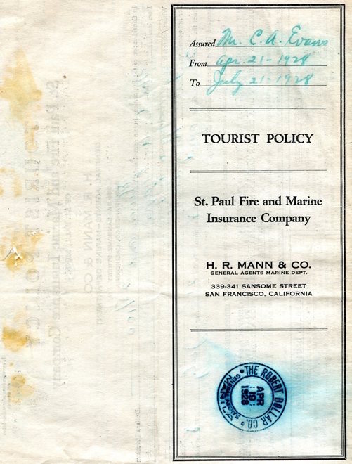 United States St. Paul Fire and Marine Insurance Co. Tourist Policy 1928