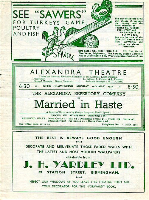 England Entertainment Birmingham Alexandra Theater Program 1937 Front