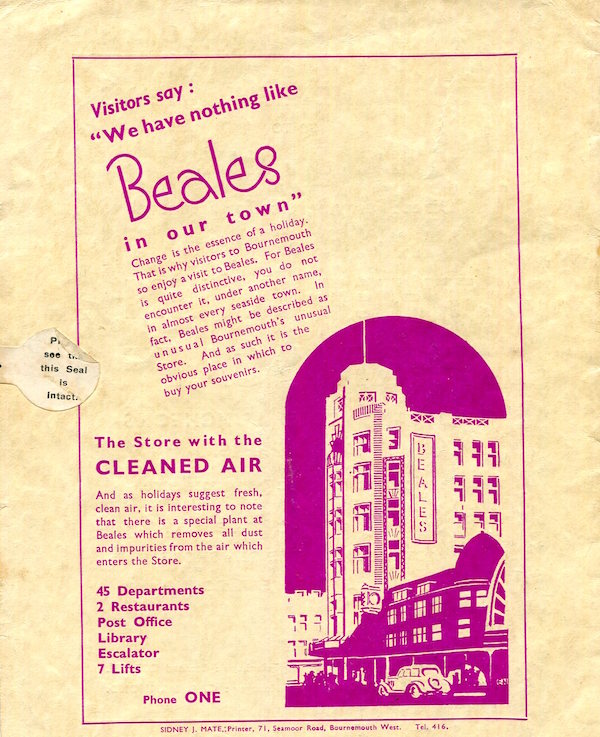 England Entertainment Bournemouth The Westover Ice Rink Program 1937 Back