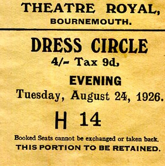 England Entertainment Bournemouth Theatre Royal Ticket 1926