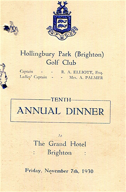 England Entertainment Brighton The Grand Hotel Golf Club Menu 1930 Front