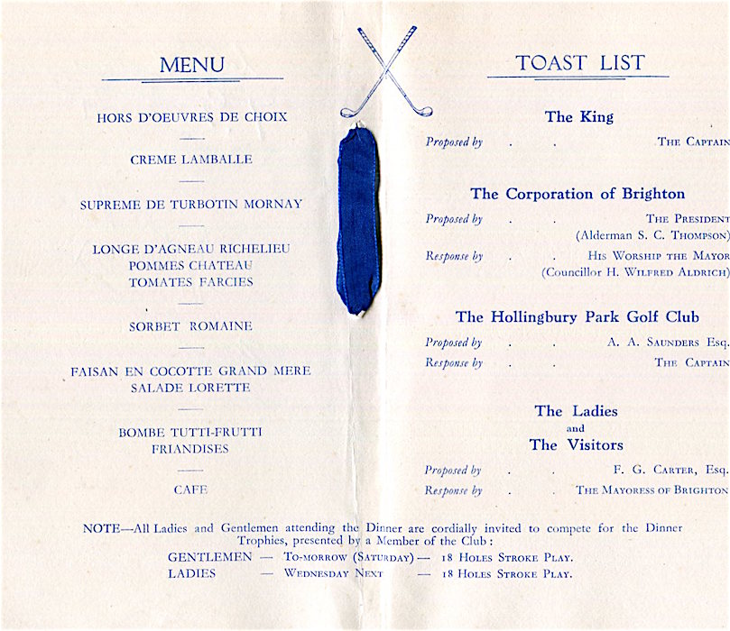 England Entertainment Brighton The Grand Hotel Golf Club Menu 1930 Inside