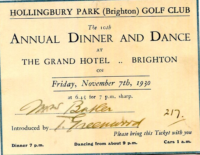 England Entertainment Brighton The Grand Hotel Golf Club Ticket 1921