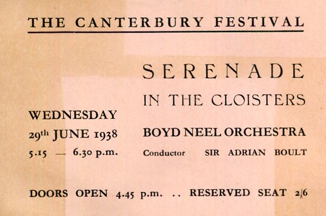England Entertainment Canterbury Cloisters Serenade Ticket 1938
