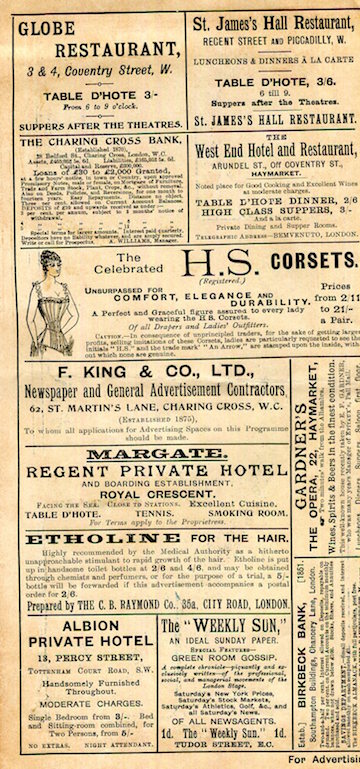 England Entertainment London Alhambra Theatre Program 1896 Inside