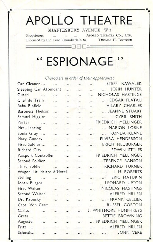 England Entertainment London Apollo Theatre Program Espionage 1935 Front
