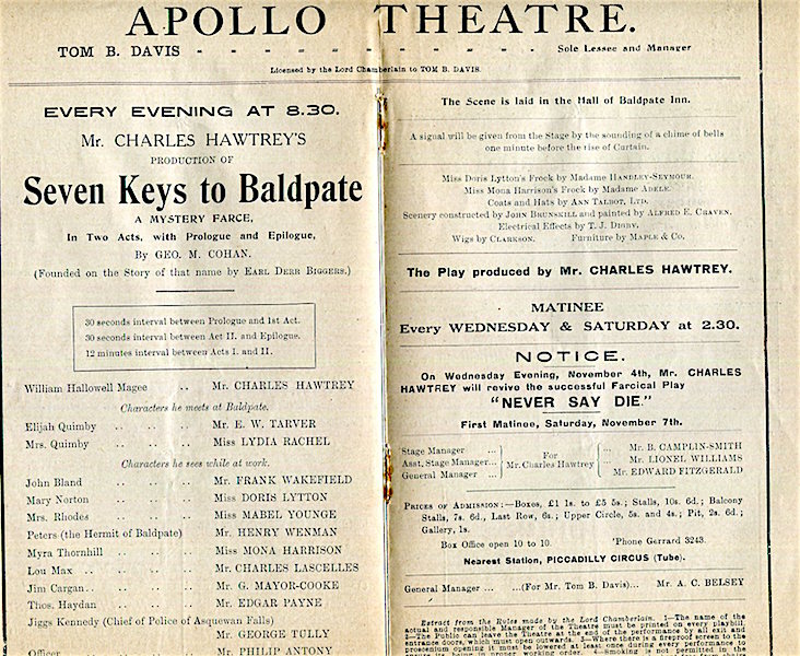 England Entertainment London Apollo Theatre Program Seven Keys To Baldpate 1914 Inside