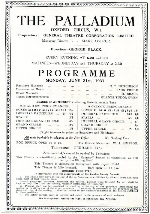 England Entertainment London Palladium Program 1937-3 Inside 1