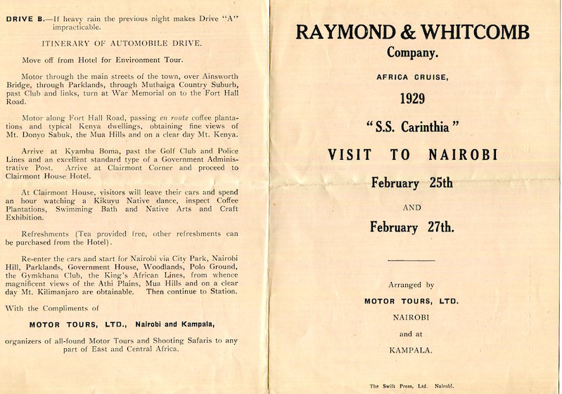 England Transport Steamship Cunard White Star Line SS Carinthia Brochure African Cruise Nairobi 1929 Front