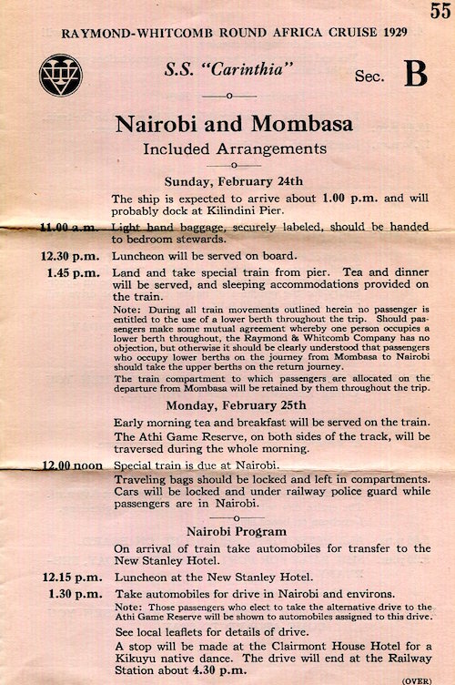 England Transport Steamship Cunard White Star Line SS Carinthia Brochure African Cruise Nairobi Mombasa 1929 Back