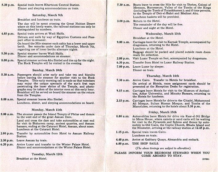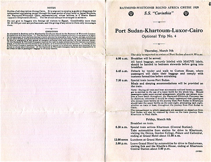 England Transport Steamship Cunard White Star Line SS Carinthia Brochure African Cruise Port Sudan Khartoum Luxor Cairo 1929 Inside
