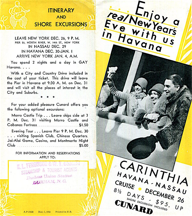 England Transport Steamship Cunard White Star Line SS Carinthia Brochure Havana Nassau 1932 Front