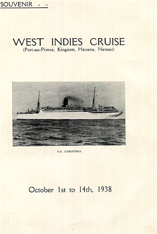 England Transport Steamship Cunard White Star Line SS Carinthia Brochure West Indies Cruise Souvenir 1938 Front