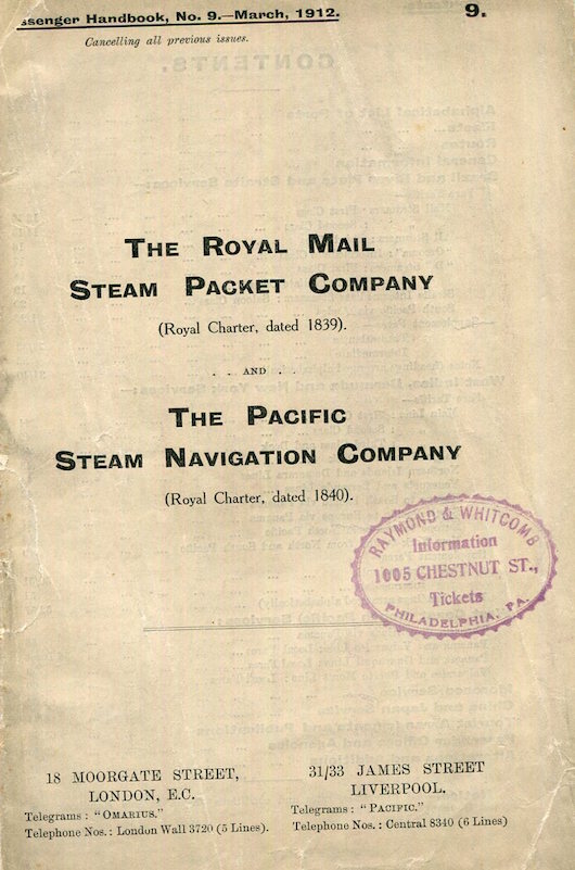 England Transport Steamship Royal Mail Line Brochure 1912 Front