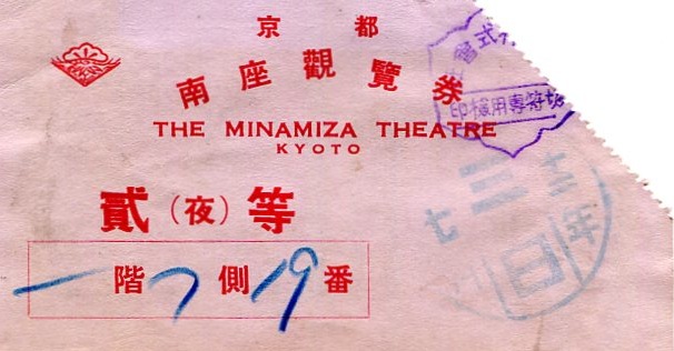 Japan Entertainment Kyoto Ticket Minamiza Theater 1937