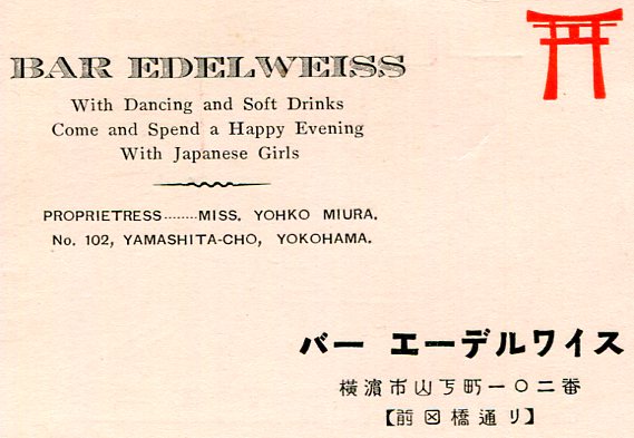 Japan Entertainment Yokohama Business Card Bar Edelweiss 1932