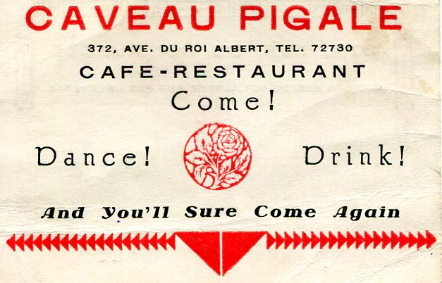 Japan Entertainment Yokohama Business Card Caveau Pigale 1932