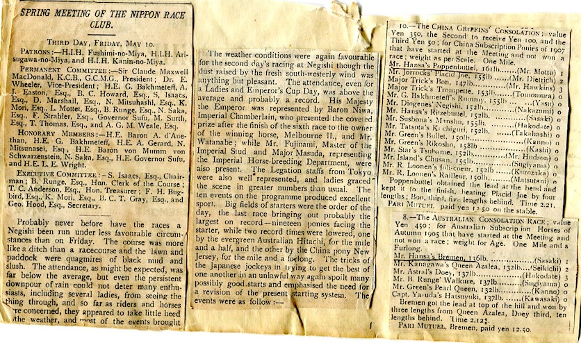 Japan Entertainment Yokohama Negishi Newspaper Artickle Nippon Race Club 1907