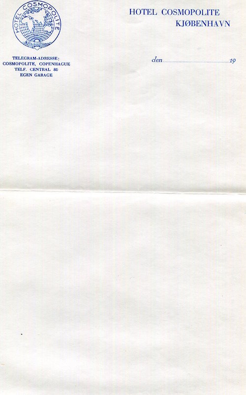 Denmark Copenhagen Hotel Cosmopolite Stationery 1930