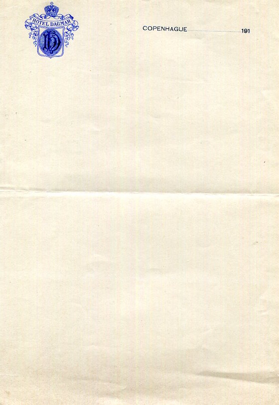 Denmark Copenhagen Hotel Dagmar Stationery 1913