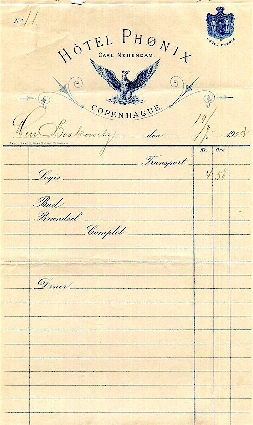 Denmark Copenhagen Hotel Phoenix Receipt 1902_1