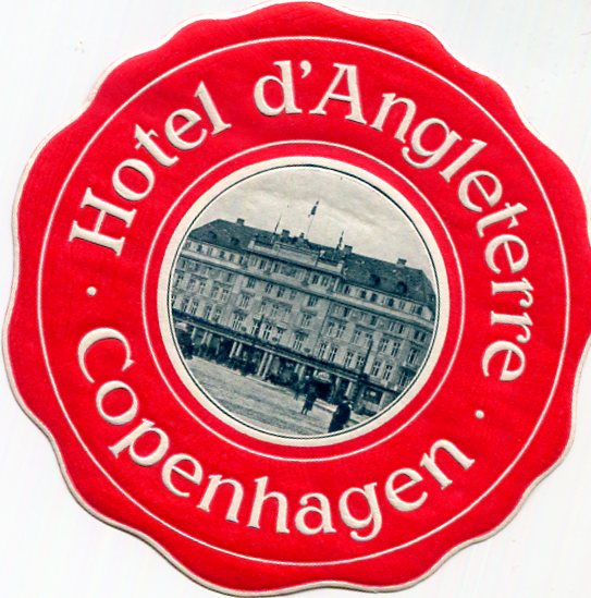 Denmark Copenhagen Hotel d Angleterre Luggage Label 1936