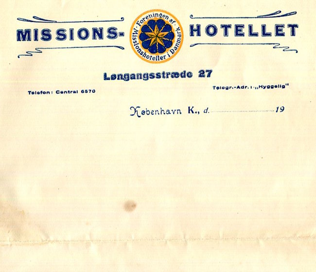 Denmark Copenhagen Missions Hotel Stationery 1937