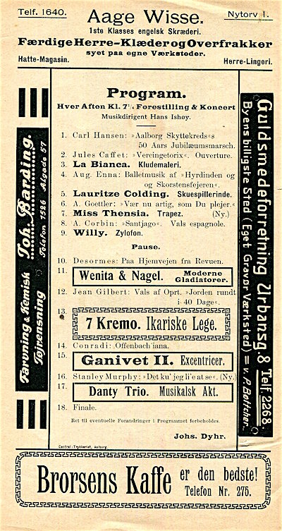 Denmark Entertainment Aalborg Variette & Koncertsal Program 1911 Inside 1