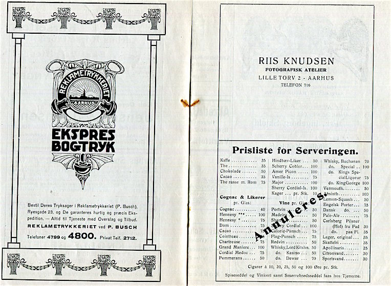 Denmark Entertainment Aarhus Casino Program 1917-1918 Inside 2