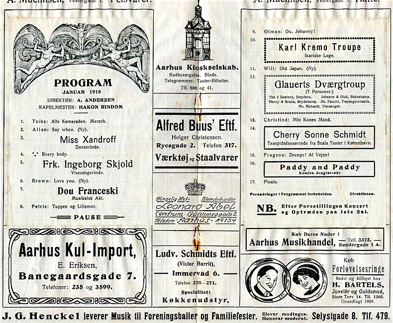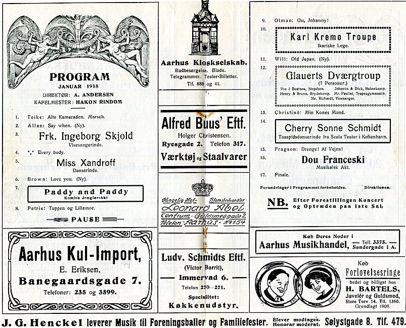 Denmark Entertainment Aarhus Casino Program 1917-1918 Front