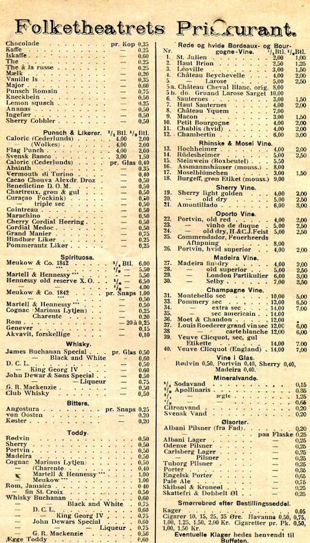 Denmark Entertainment Aarhus Casino Program Wine List 1918 Inside 2